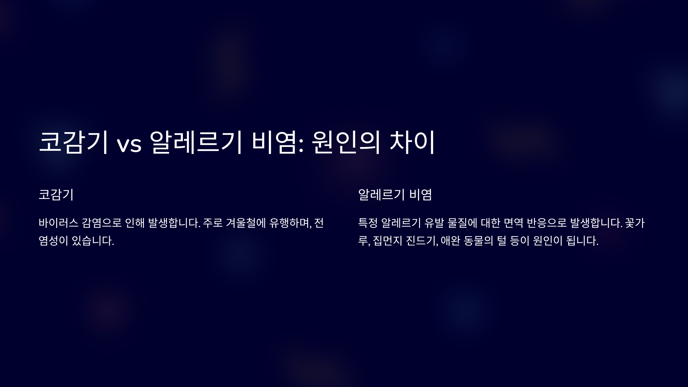 다음으로, 감기와 비염의 원인에 대해 자세히 알아볼게요! 감기는 바이러스가 원인이지만, 비염은 면역 반응과 관련이 깊답니다. 👇