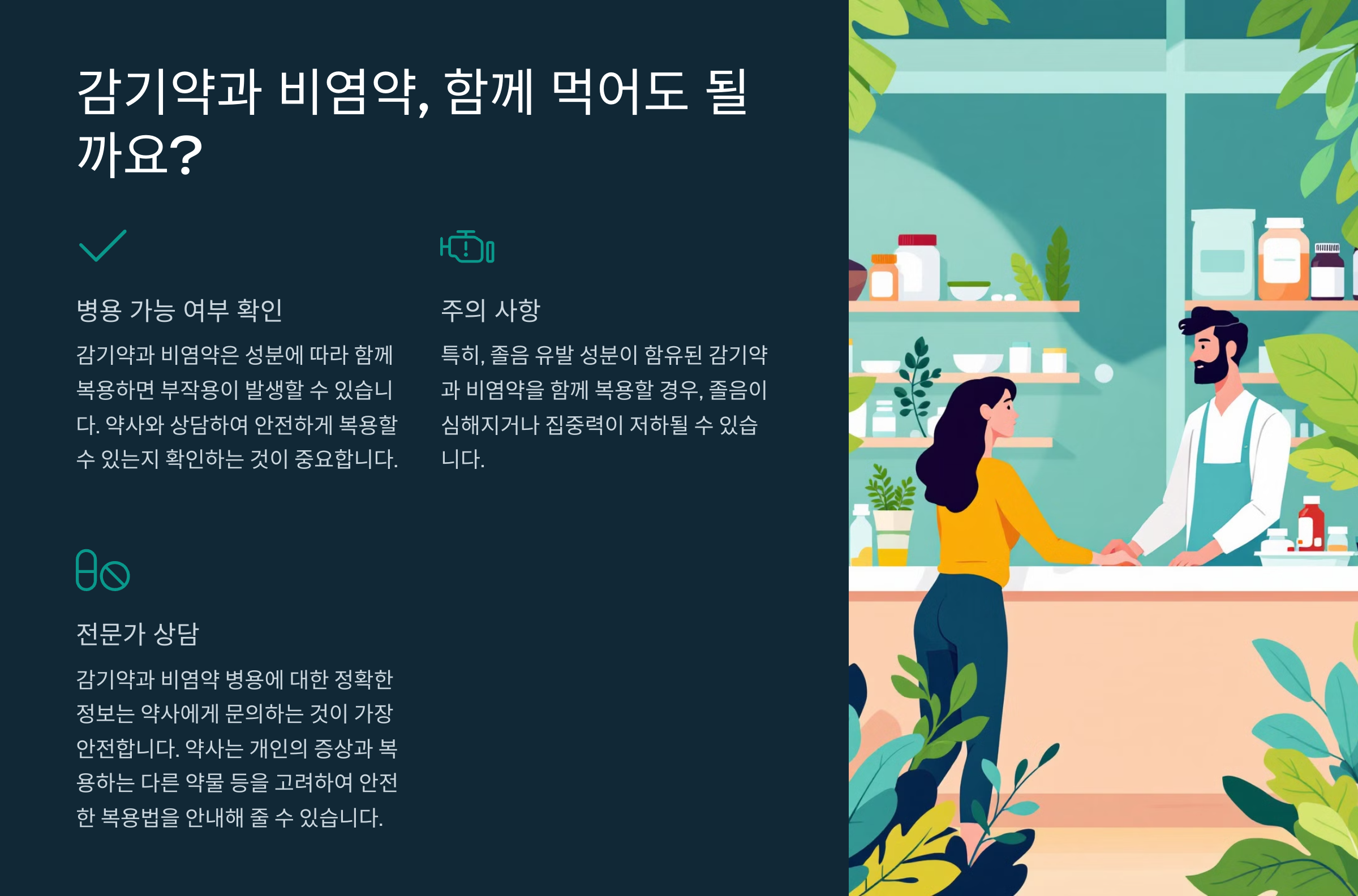 감기와 비염이 동시에 왔을 때, 감기약과 비염약을 함께 먹어도 될까요? 정답은 "경우에 따라 다르다"예요. 두 약이 서로 영향을 미칠 수 있기 때문에 약 성분을 잘 확인하고 복용해야 해요.