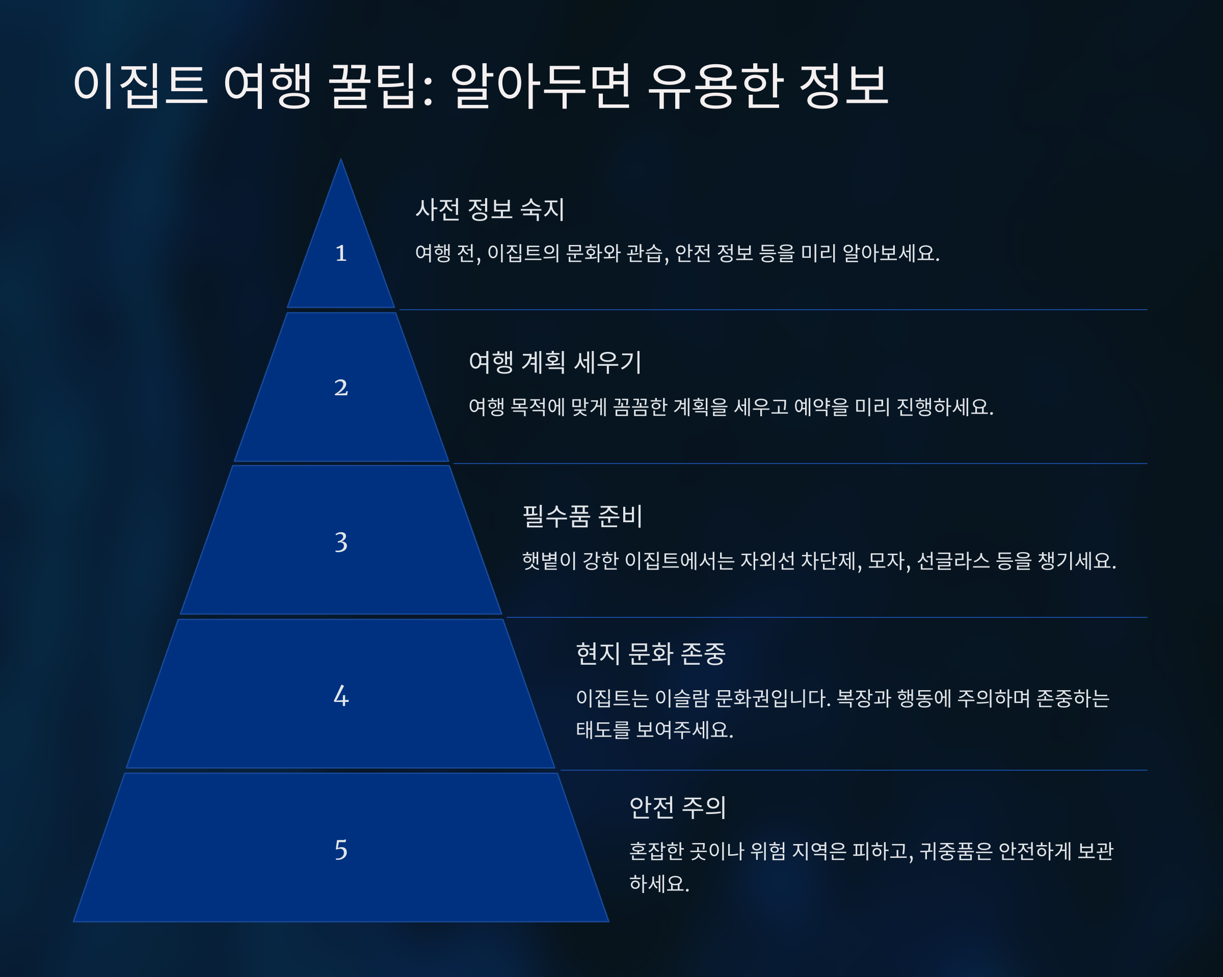 이집트 여행을 더욱 즐겁고 안전하게 하기 위해 몇 가지 중요한 팁을 준비했어요! ✈️