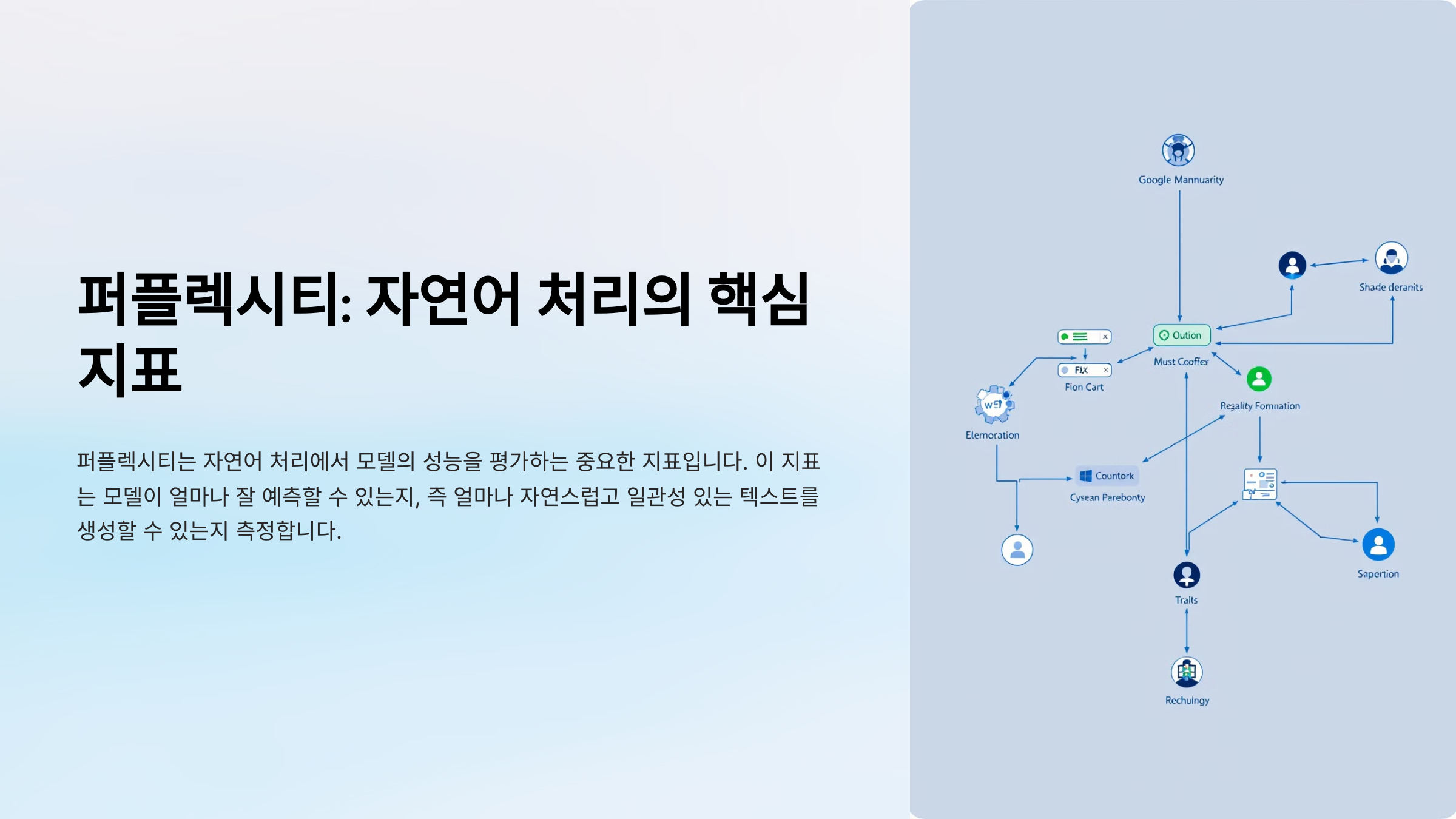 이 개념은 기계 학습과 자연어 처리(NLP)에서 모델의 성능을 평가하는 중요한 척도로 사용돼요. 특히, 언어 모델(Language Model)의 경우 퍼플렉시티가 낮을수록 모델이 더 정확하게 다음 단어를 예측한다는 뜻이죠.