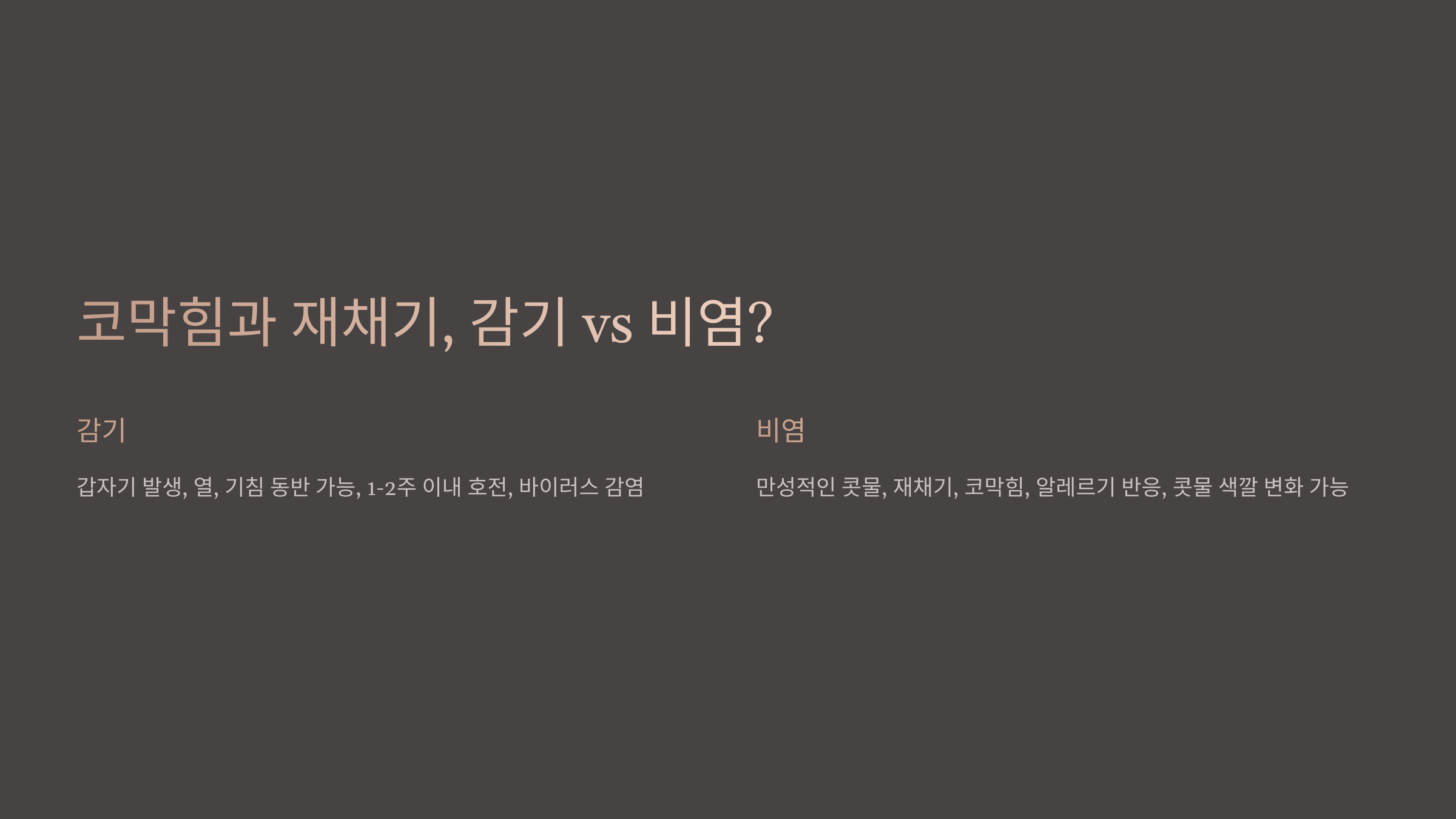 🤔 감기와 비염 증상 비교표
