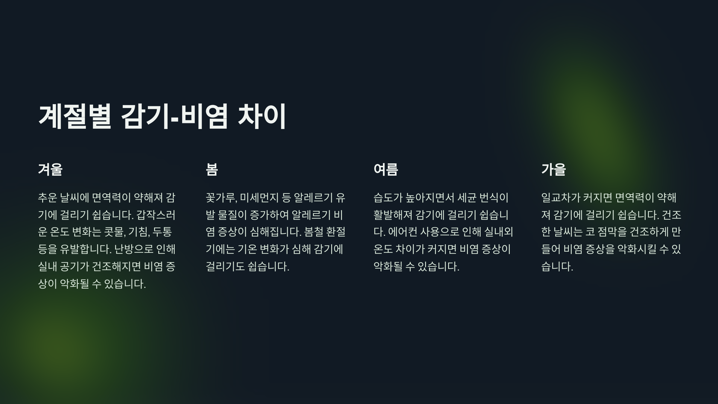 계절별 감기·비염 차이 🍃❄️🌸☀️