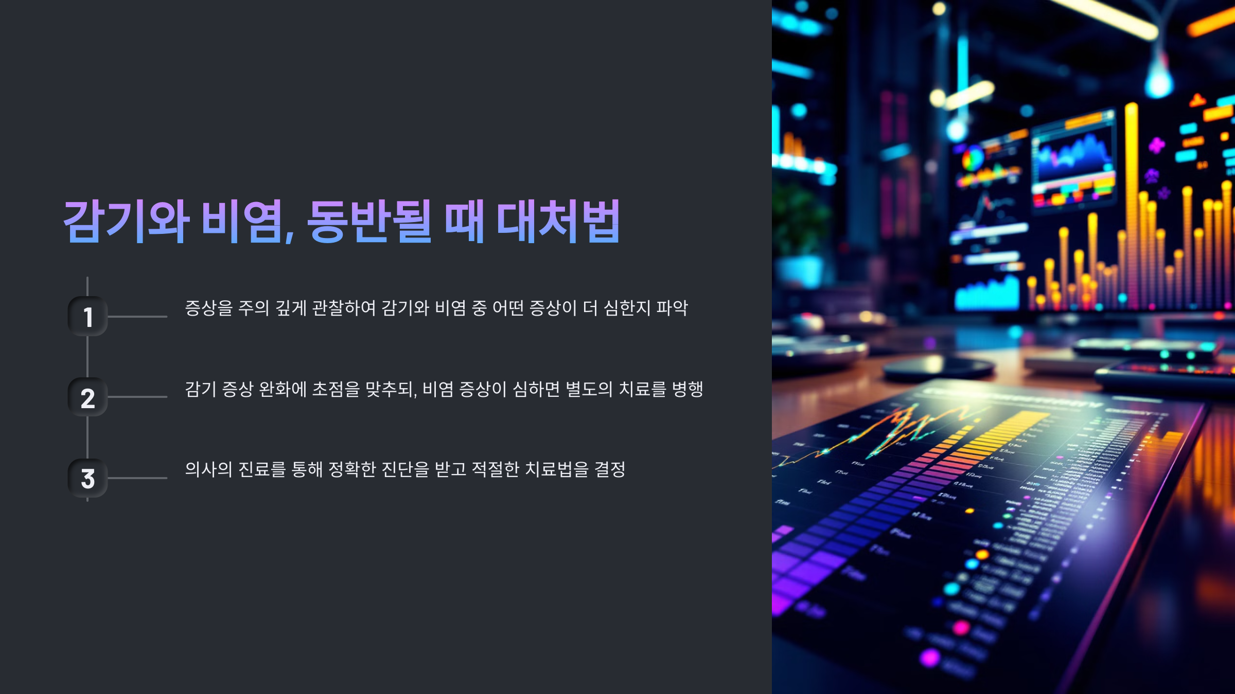 감기와 비염이 동시에 발생하면 평소보다 더 신경 써서 관리해야 해요. 특히 코 건강을 유지하는 것이 증상을 완화하는 데 큰 도움이 된답니다! 😊